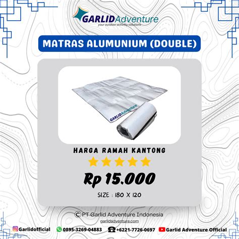 Indonesia notabene adalah negara dengan keindahan alam yang menakjubkan. Salah satu destinasi wisata yang populer di Indonesia adalah Matras Double. Matras Double merupakan alat yang sangat diperlukan untuk mendirikan tenda di alam bebas. Tentu, pengalaman berpetualang menjadi lebih baik dengan menginap di dalam tenda. Matras Double adalah perlengkapan camping yang mendukung tidur yang nyaman sekaligus memberikan penambahan isolasi dingin dari bawah.
